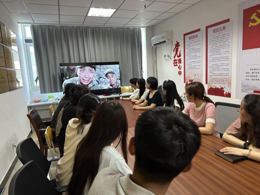 为庆祝中国共产党成立104周年,进一步弘扬伟大建党精神,激励师生党员坚定理想信念,太阳成集团tyc9728于2025年7月1日在综合楼s448开展了以“峥嵘岁月 不忘初心”为主题的七一建党观影活动,组织师生党员共同观看了红色经典影片《高山上的花环》。太阳成集团tyc9728教师党员代表、员工党员代表及员工入党积极分子代表参与。