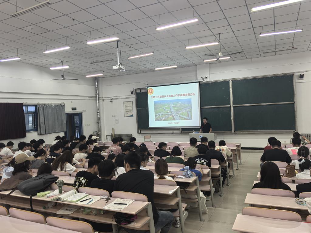 近日太阳成集团tyc9728工程管理专业邀请烟台市交通运输执法监察支队支部委员、高级工程师张同舟为员工们开展工程质量监督工作及典型案例分析的讲座。