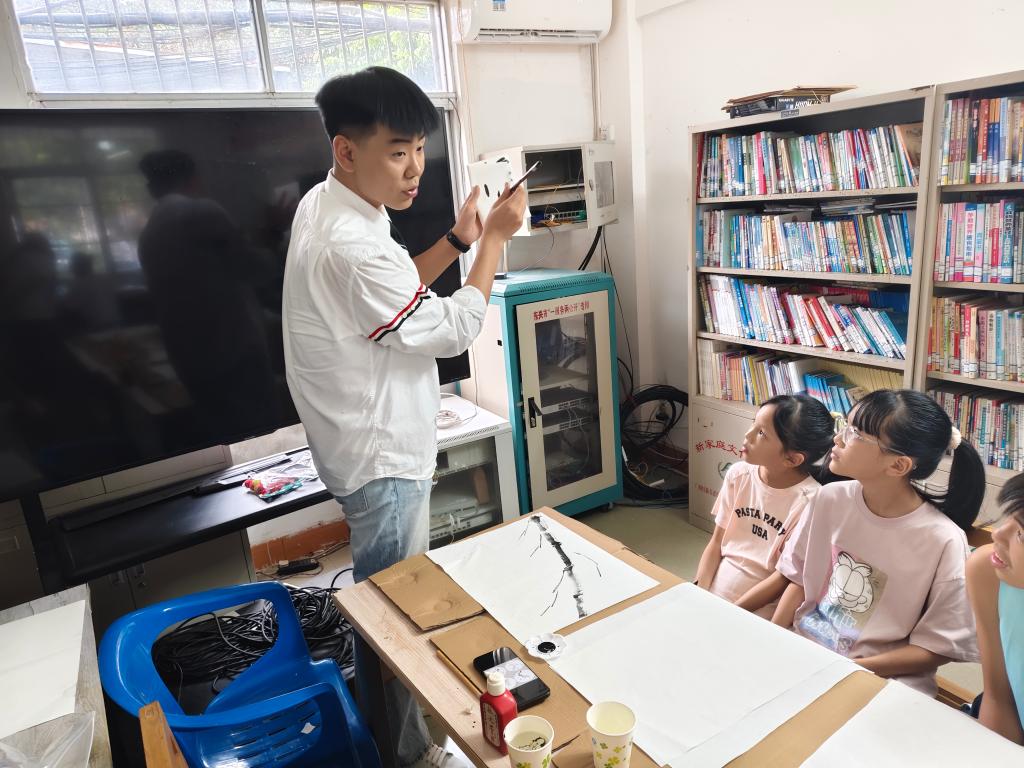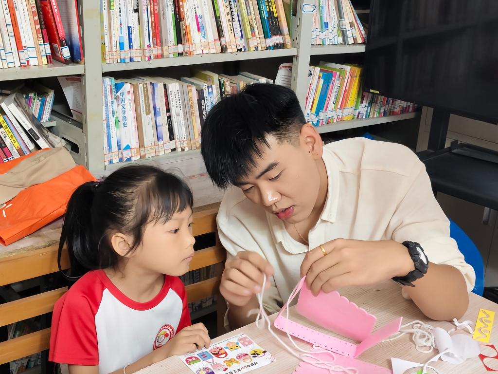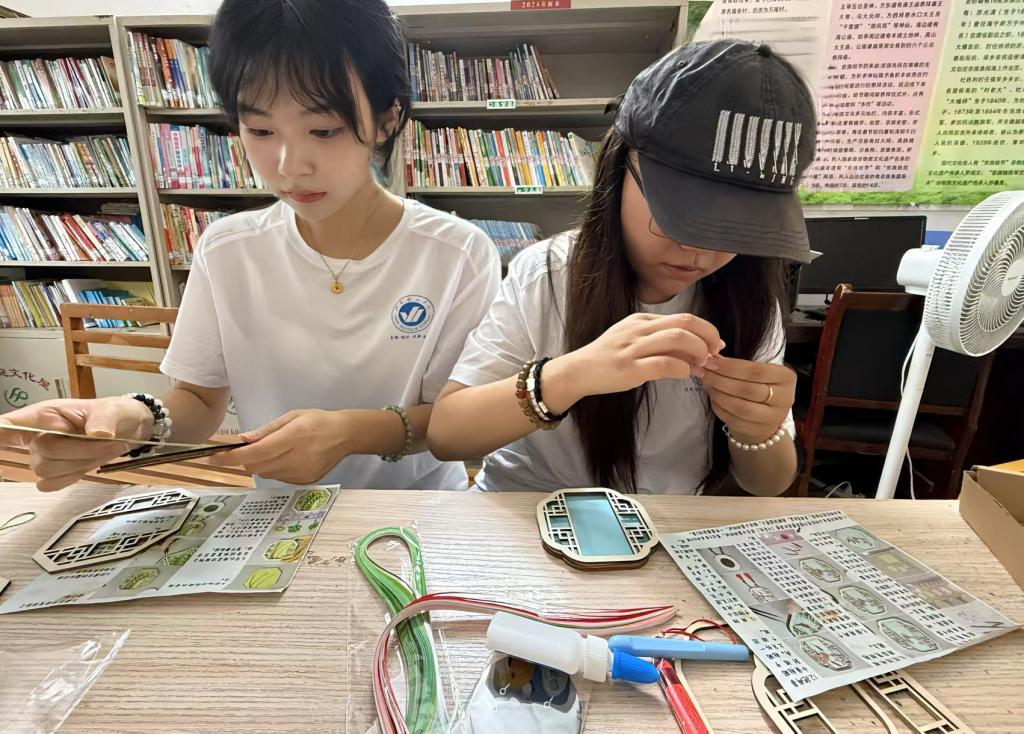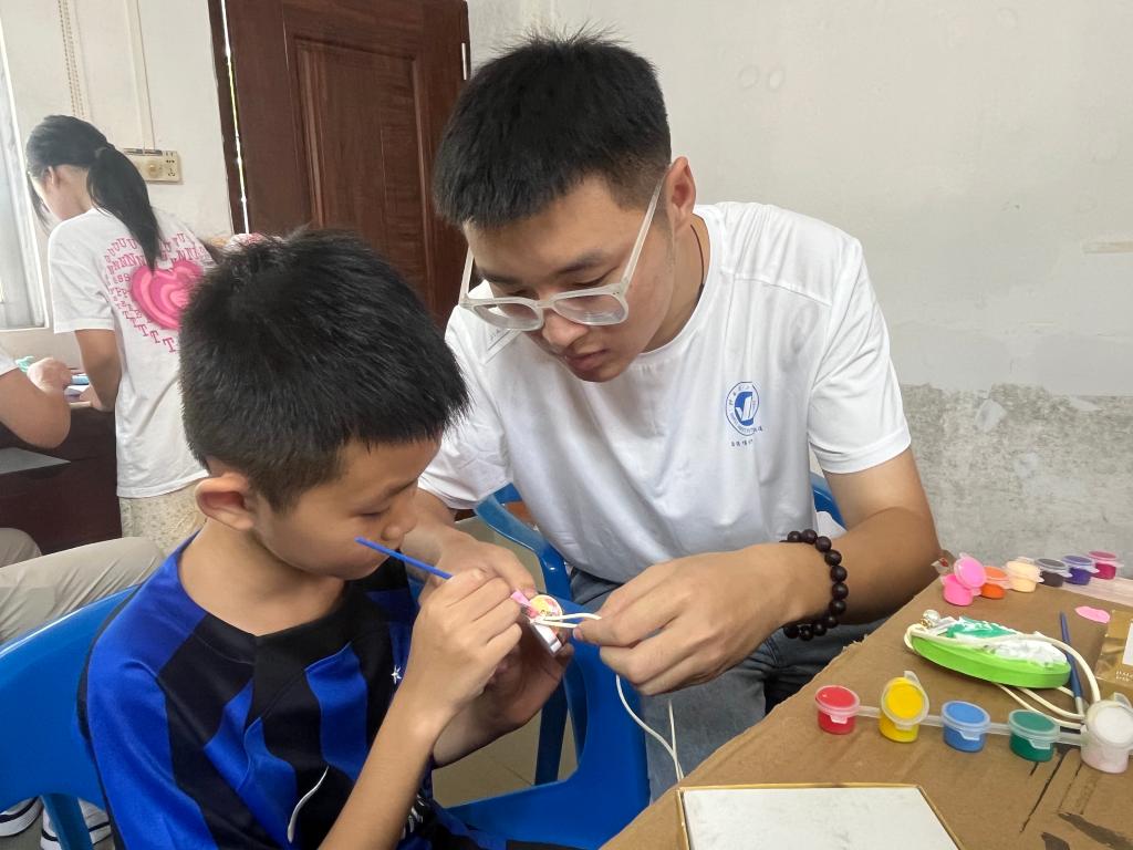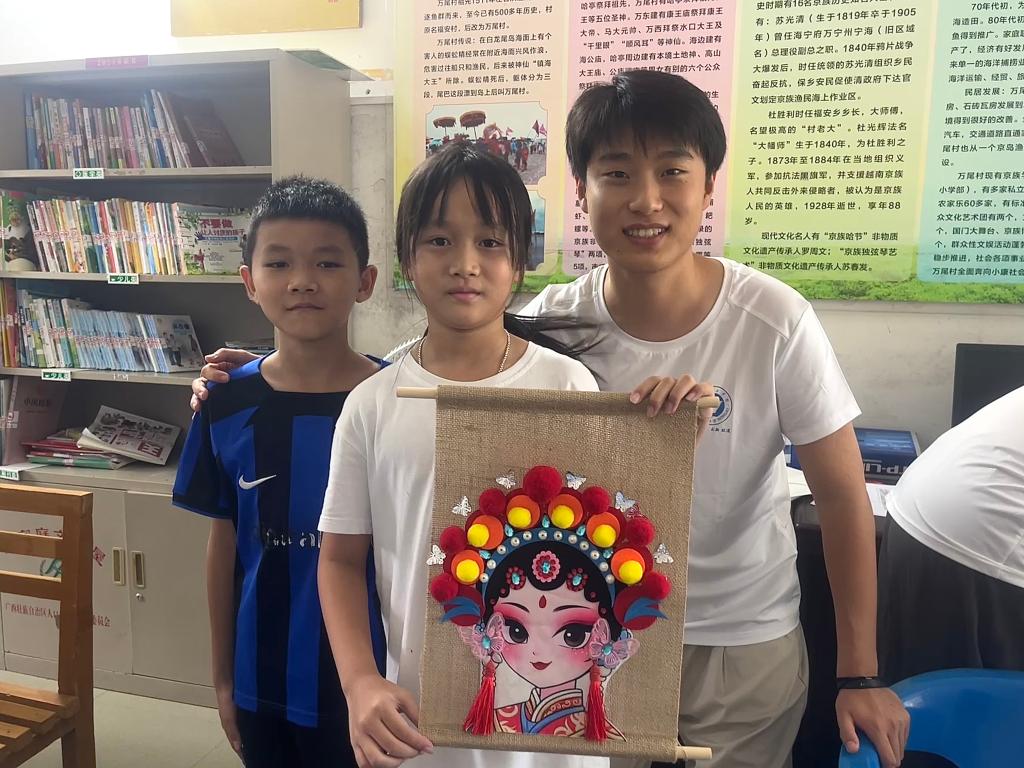 在万尾村期间,实践队将文化传承的使命付诸行动,开展了富有创意的爱心支教活动。队员们精心设计课程,将非遗文创理念融入课堂,引导孩子们动手制作富有京族元素或中华传统文化特色的创意小作品。通过寓教于乐的方式,不仅激发了孩子们对家乡文化、民族艺术的浓厚兴趣和动手能力,更是在他们心中悄然播撒下文化认同与创新传承的种子。这场跨越山海的“文化课堂”,是青年学子助力非遗“活态传承”、赋能乡村文化振兴的生动实践。