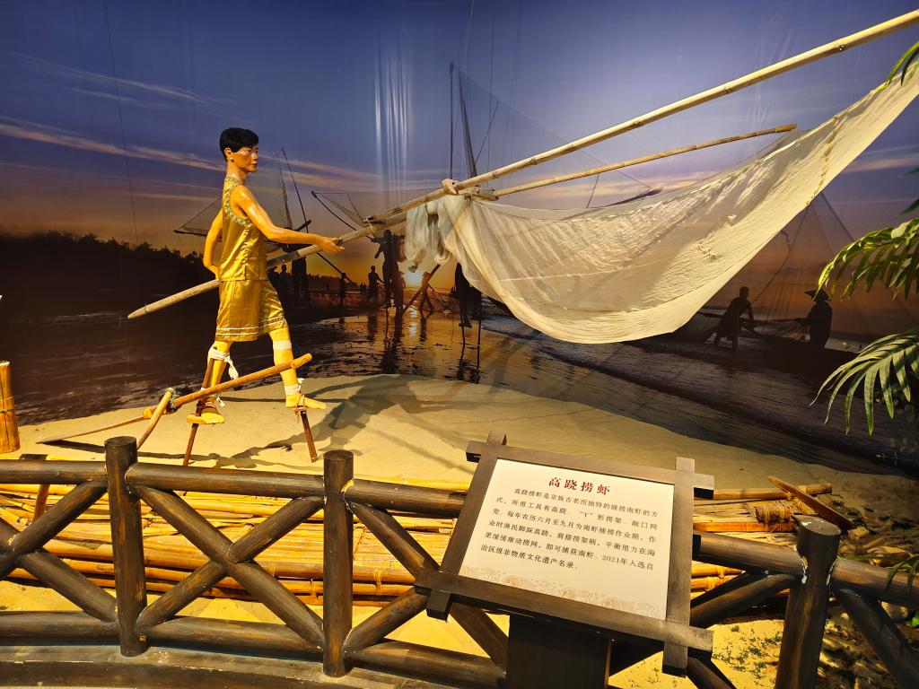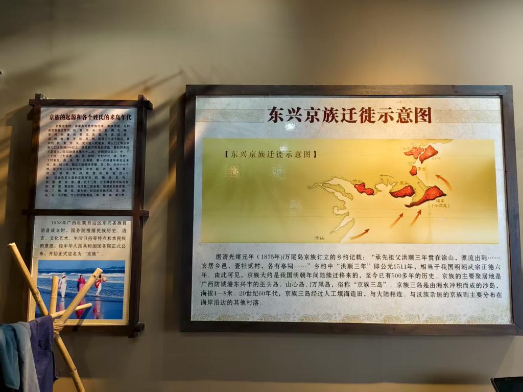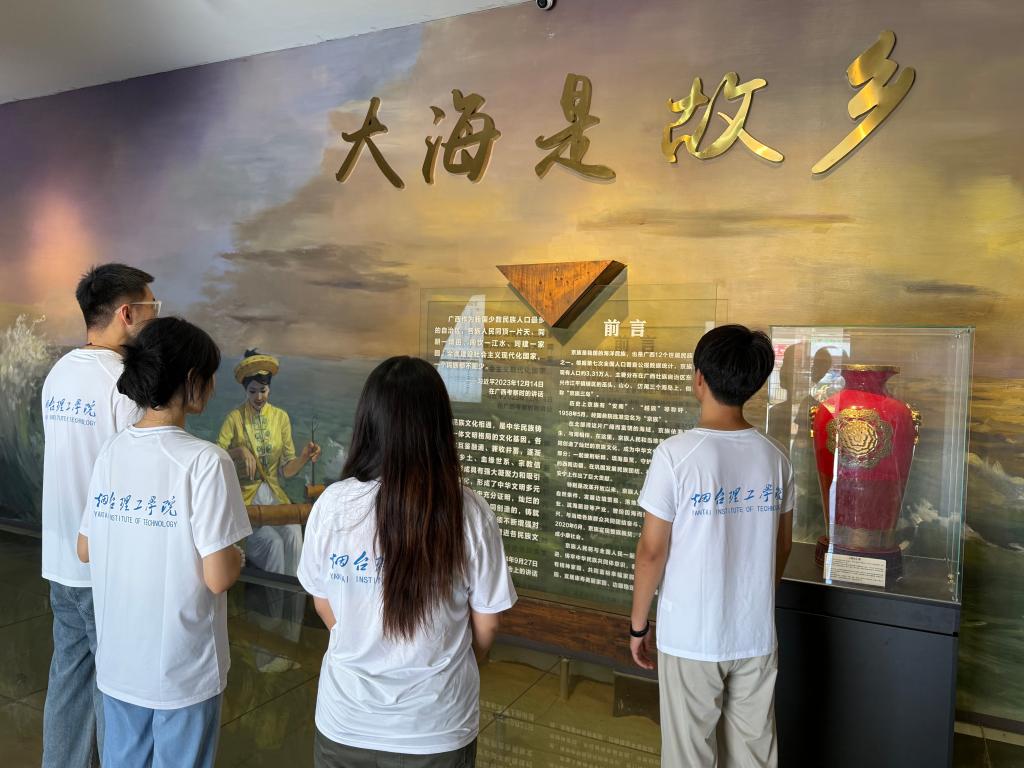 在博物馆外的京族哈节文化展区处,队员们驻足良久。这个被列入国家级非物质文化遗产名录的节日,以其独特的庆祝方式和深厚的文化内涵深深吸引了大家。作为京族一年中最隆重的节日,哈节不仅是京族人民祈求丰收、渔猎文明的活态传承,更是一座鲜活生动的民族团结教育课堂。当地工作人员介绍道,“节日期间,各民族群众都会身着盛装,一起唱歌跳舞,就像石榴籽一样紧紧抱在一起。”