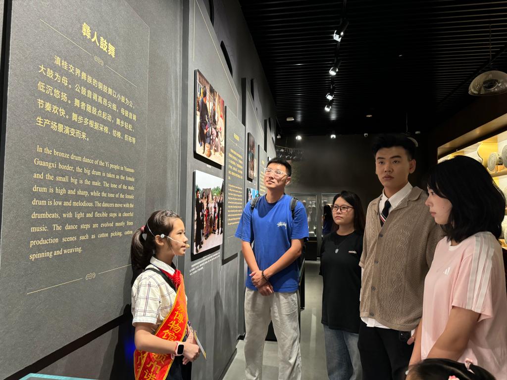实践尾声,队员们走进广西民族博物馆。这座民族文化殿堂,宛如一部立体的广西民族文化百科全书。从震撼的铜鼓文化到精美的壮锦技艺,从独特的干栏建筑到多彩的民族节庆,丰富的馆藏和现代化的展陈,系统呈现了广西十二个世居民族交往交流交融的悠久历史与灿烂文化。队员们深刻感悟到,各民族在长期的历史进程中共同创造了辉煌的中华文明,其文化的多样性、包容性与创新性,共同构成了中华民族强大的凝聚力和不竭的生命力。博物馆作为文化传承的重要载体,在保护、研究、展示和传播中华优秀传统文化,推动其创造性转化、创新性发展中发挥着不可替代的作用。