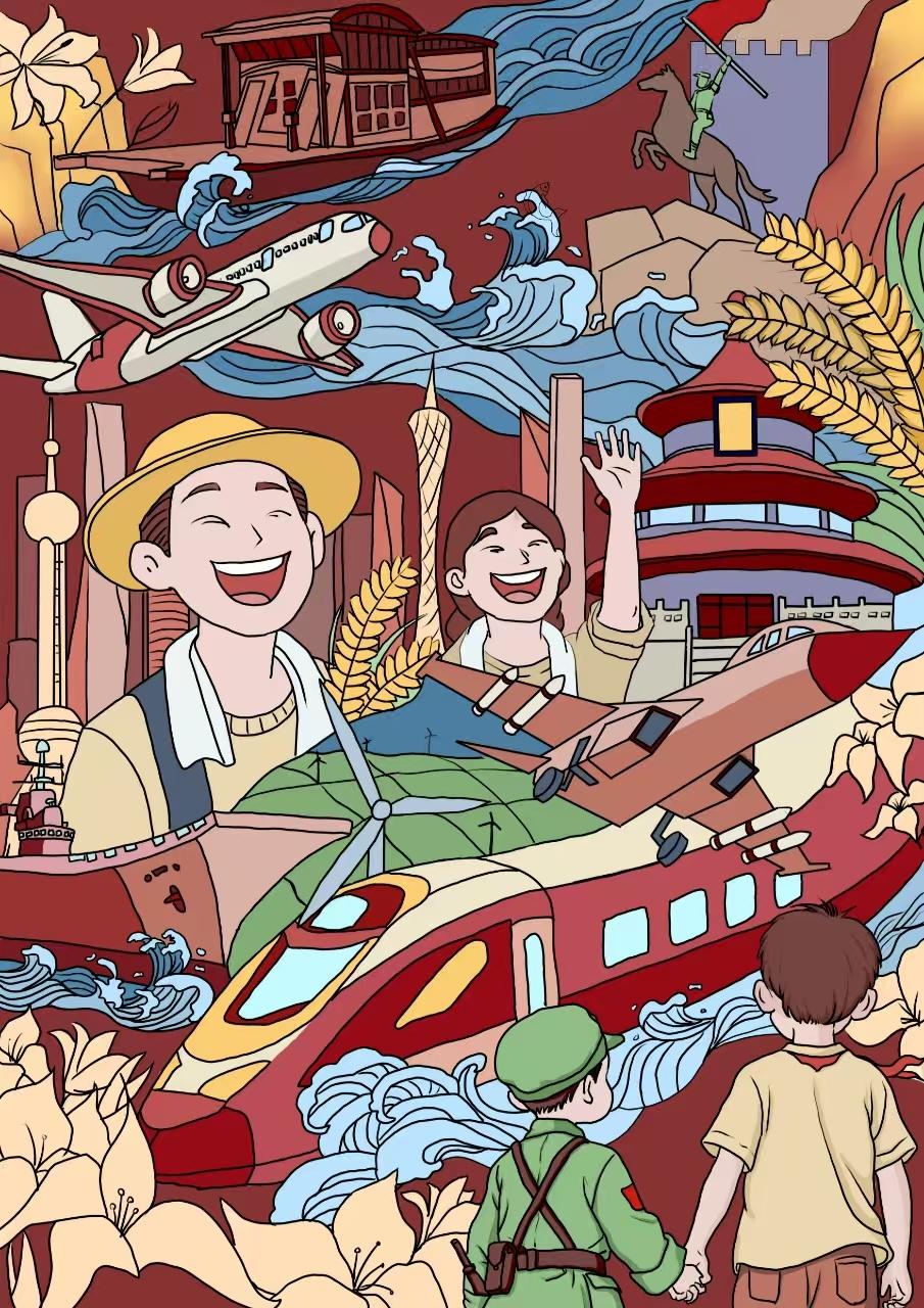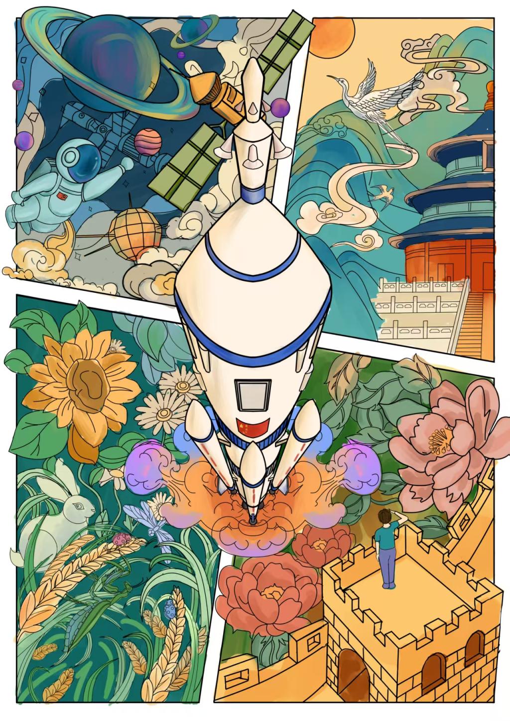 在红色插画主题单元,由安平、张涵老师指导的数字媒体艺术专业建2306-1班员工张关宏作品《我与天坛》、石志南作品《星火长征》荣获一等奖;孙嘉懿《革命征程印象》、钟真《新欣向荣》、张瀚升《薪火相传》分获二等奖。这些作品主题鲜明、构思新颖,既体现出扎实的专业基础,也展现了青年一代对红色文化的深刻理解与艺术表达。