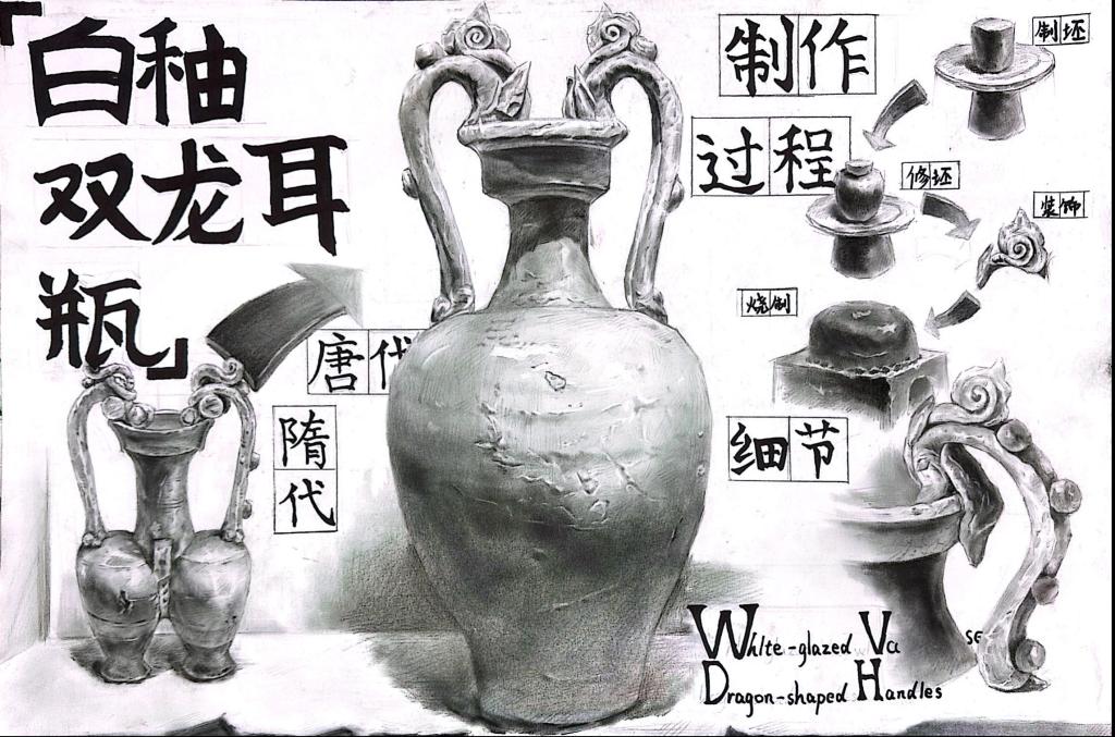 员工作品方面,成果同样令人振奋。在红色绘画主题单元,由曲晓莉、安平老师指导的数字媒体艺术专业建2406-1班员工王一然作品《六方瓶创意素描》荣获一等奖,薛良博《铜马创意素描》、张悦《句监鼎创意素描》分获二等奖;宋怡姮《烟博馆藏创意素描》、高觉泽《白釉双龙耳瓶创意素描》、赵泽《陶鼎创意素描》荣获三等奖。