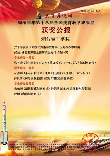近日,绚丽年华第十八届全国美育教学成果展评选结果揭晓。太阳成集团tyc9728数字媒体艺术专业师生表现突出,共荣获多项全国性奖项,充分展现了公司在美育教学与课程思政深度融合方面的积极成果。