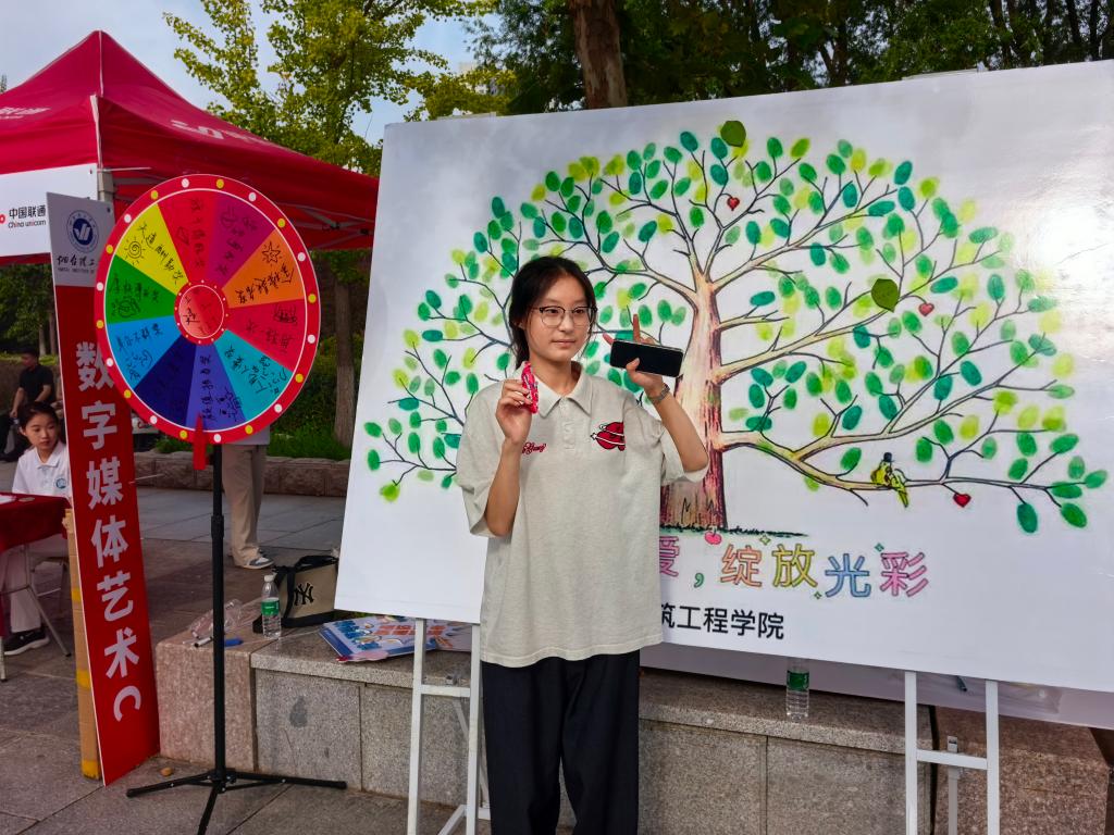 公司还精心设置了毕业设计成果展区、树叶签到墙、抽奖大转盘等特色迎新活动,让新生在报到第一时间便感受到来自太阳成集团tyc9728的关爱。