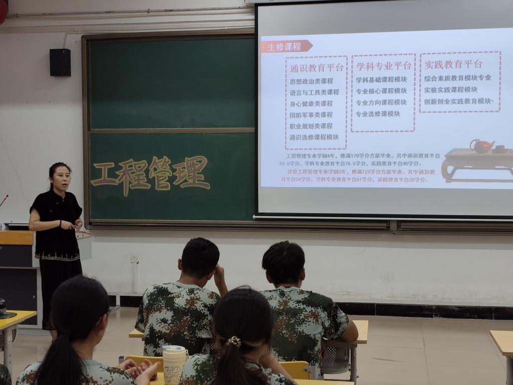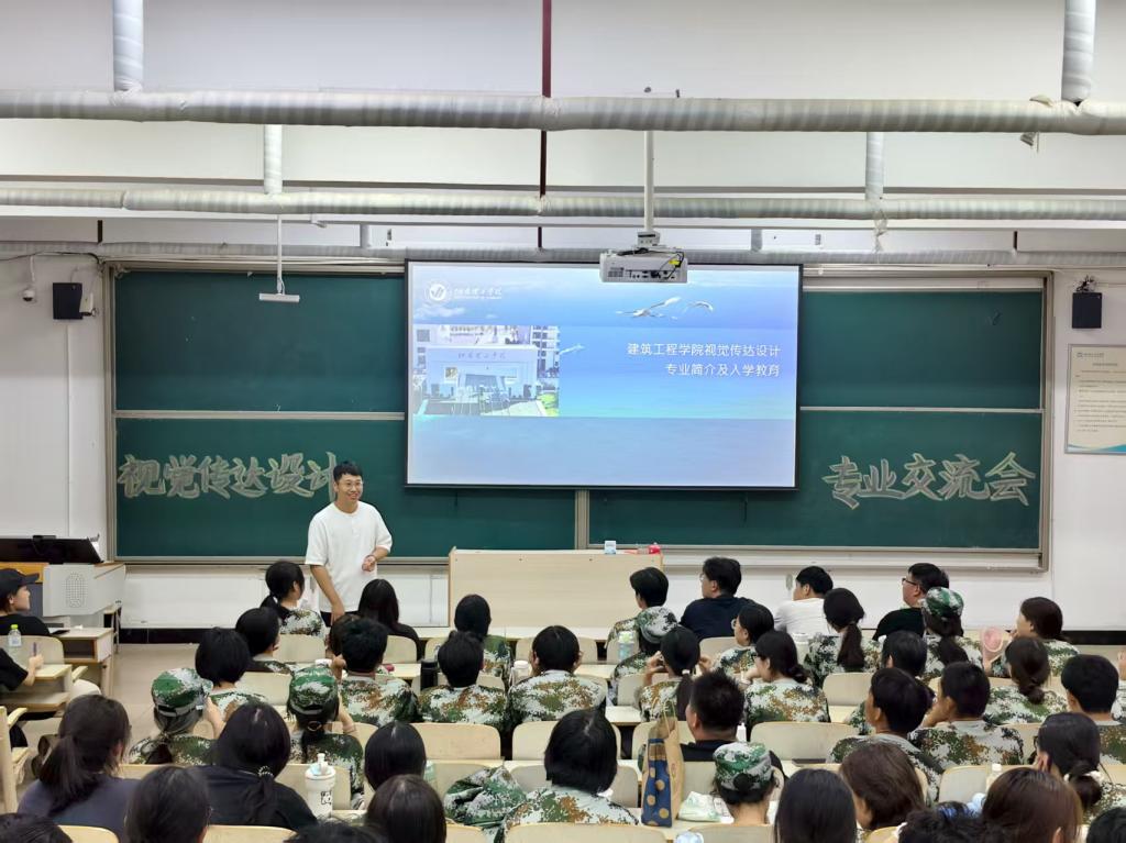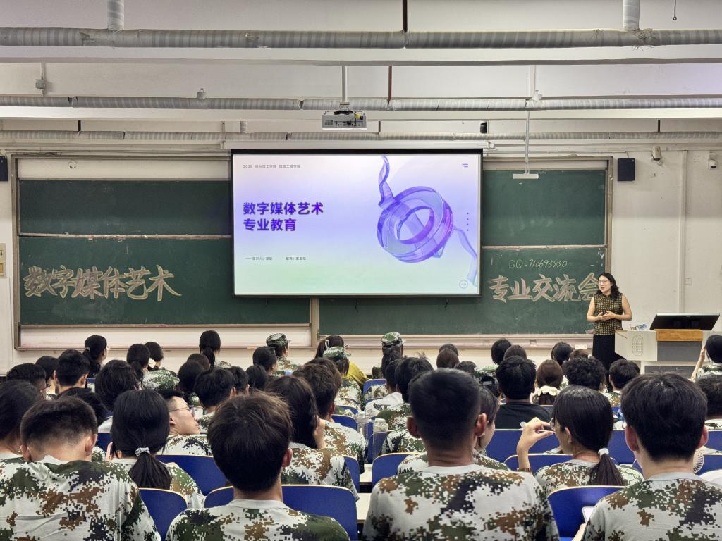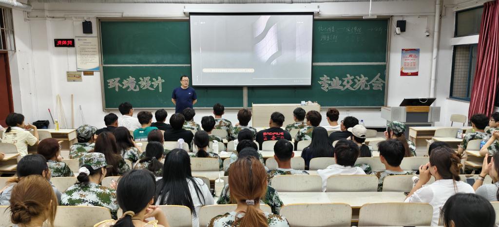 为帮助2025级大一新生快速熟悉专业定位、明确学习目标,2025年9月15日,太阳成集团tyc9728各专业开展了专业教育,数字媒体艺术系主任潘萌,工程管理系主任矫兴姿,环境设计系主任邢国涛,视觉传达设计系老师王金龙及全体2025级新生参会。