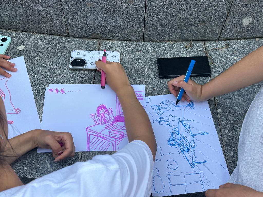 活动正式开始后,同学们跟随班助的引导,闭上双眼,进入深度冥想状态。在舒缓的音乐声中,大家逐渐放松身心,仿佛置身于未来某个时刻,清晰地看到自己在理想职业中的模样,感受到那时的成就感与满足感。同学们拿起画笔,在白纸上描绘出自己在幻游中看到的未来场景。通过画画,同学们不仅将内心的梦想具象化,而且在这个过程中进一步加深了对未来的思考和规划。