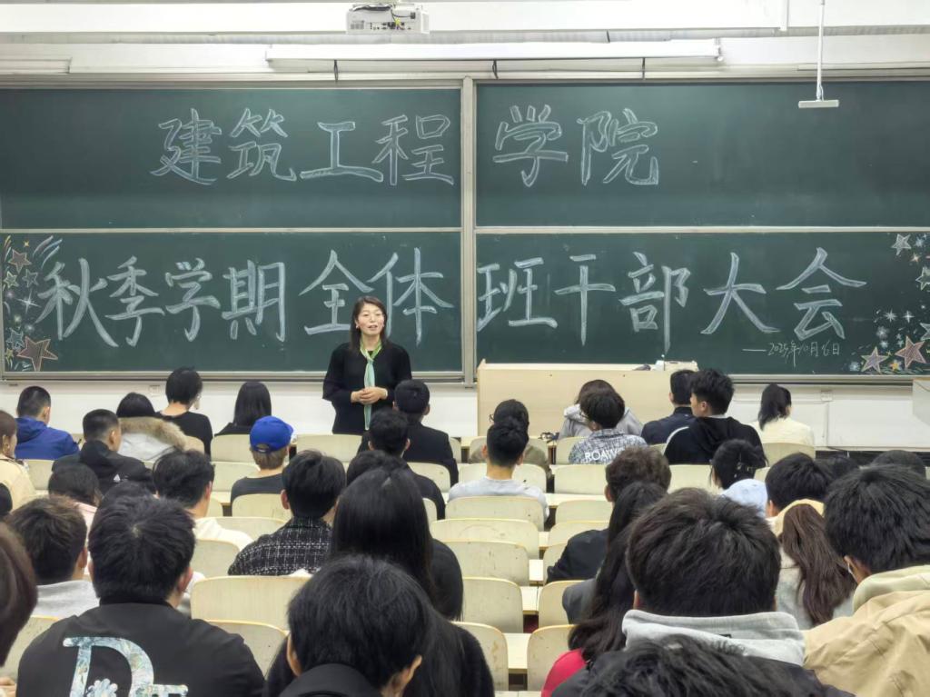 随后,会议进入工作部署与交流环节。于小康老师从就业工作的角度发言,他分析了当前的就业形势,并对新学期就业指导与服务工作的安排进行了介绍,鼓励同学们早规划、早准备。紧接着,安文静老师从宣传和心理工作的角度就公司宣传工作的要点、员工心理健康教育的重要性及支持渠道作了详细说明,希望班干部们能积极发挥桥梁纽带作用。葛晓菲老师则从安全与奖学金评定工作的角度着重强调了校园安全,特别是宿舍用电、防火防盗等注意事项,并讲解了新学期奖学金评定的相关政策与流程。随后,马杰老师从资助工作角度系统介绍了国家及公司的各项资助政策,确保家庭经济困难员工能够及时获得有效帮助。于渊老师则从思想引领和组织建设的角度,对员工党员的培养、发展工作及相关的主题教育学习活动进行了动员与布置。