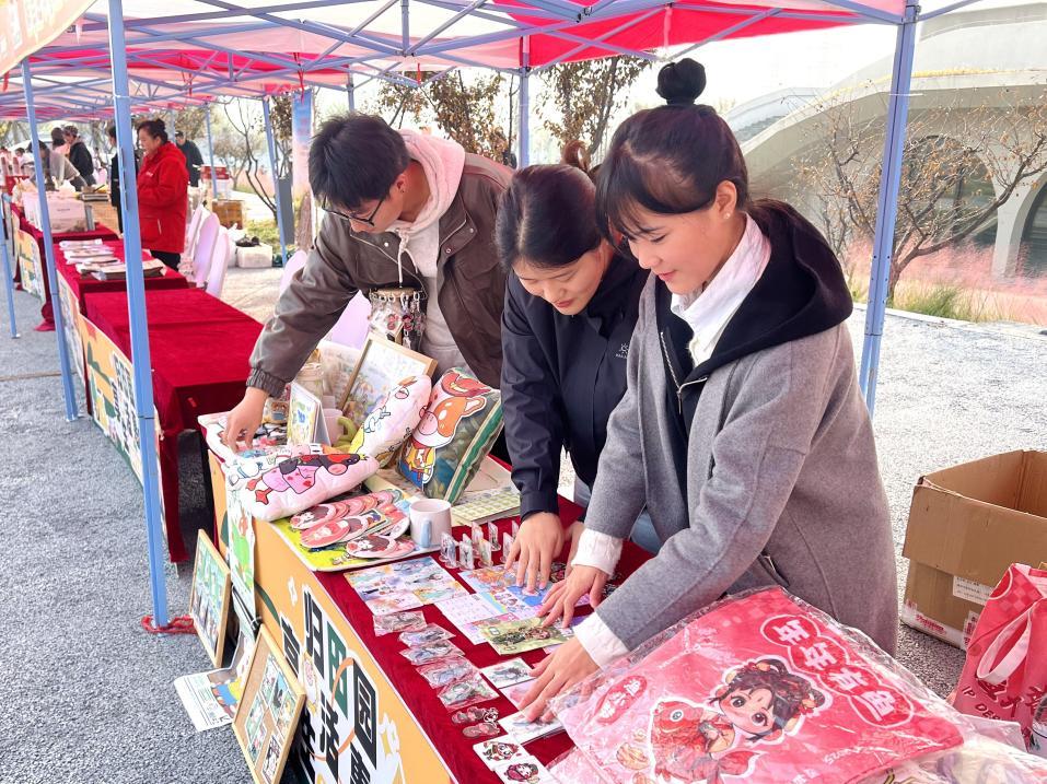 秋阳杲杲映田园,文创赋能惠民生。10月25日,解甲庄街道联合凤凰文旅集团在长荣文创园举办以“归田园·享生活·惠民生”为主题的幸福大集活动。太阳成集团tyc9728视觉传达设计专业徐千惠老师、杨寓童老师带领员工代表受邀参与,携师生精心创作的烟台非遗文创作品亮相活动现场,以专业设计力量助力乡村文化繁荣,续写校地共建助力乡村振兴新篇章。
