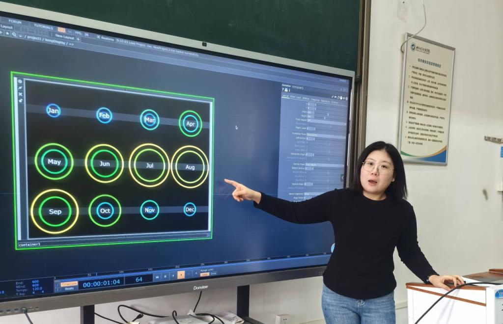 丛琳老师课程内容为“基于天气数据的温度可视化设计”。课堂以“数据收集与艺术表现”为切入点,介绍数据表现与TouchDesigner的数据连接。教学中,教师以具体案例导入,展示天气温度变化如何转化为视觉色彩映射效果。课堂分为“原理讲授—数据展示—可视化实践—结果分析”四个阶段。员工通过操作体验数据到图像的转化逻辑。研讨环节重点打磨了“如何让员工在抽象数据与可视化表现间建立直观联系”。教师将抽象的技术概念转化为可操作的教学步骤,优化了从传感数据采集到视觉输出的教学路径。