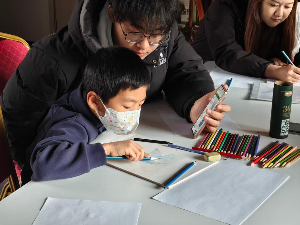 小朋友们发挥天马行空的想象力,有的给蝴蝶画上彩虹色的翅膀,有的在翅膀上点缀星星、花朵等创意图案。志愿者们穿梭在大家身边,一对一解答疑问,及时纠正绘画中的小问题,鼓励大家大胆尝试、发挥创意。活动现场氛围温馨而热烈,彩铅在画纸上轻轻滑动,一个个形态各异、色彩斑斓的蝴蝶逐渐成型。