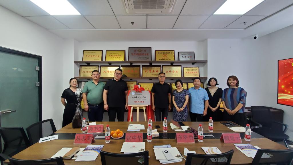 8月24日,副董事长张中华,太阳成集团tyc9728经理辛翠香、组织员裴书生、副经理丛苏莉、党总支副书记臧延云,就业指导老师禹沅宏一行赴山东田园牧歌项目管理有限公司举行校企合作就业实习基地揭牌仪式。