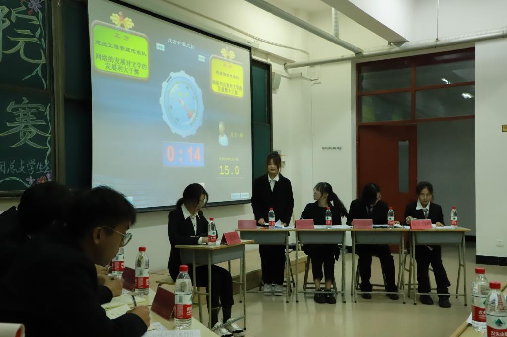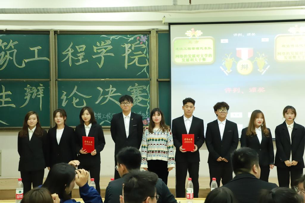 本次比赛由建筑工程管理与视觉传达设计作为正反方就“网络发展对文学发展的利与弊”展开激烈辩论。开场后由正方一辩开篇立论,指出网络技术的发展使得文学传播更为广泛,增加文学发展平台。而反方则表示网络发展造成了“庸俗文学”现象的产生。双方言辞犀利,逻辑清晰,经过攻辩,自由辩论环节,正反双方清晰地展示己方想法,并精彩表现了网络与文学之间的利害关系。最后由现场评委对此次比赛进行点评,并指出辩论双方在辩论过程中存在的问题。