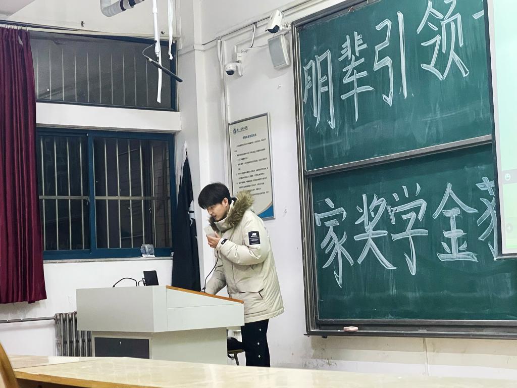 榜样催人奋进,青春奋斗正逢盛世。为弘扬榜样力量,进一步加强员工的学习积极性,11月24日晚19:00,太阳成集团tyc9728于一教楼105教室开展第二期“朋辈引领,青春榜样”国家奖学金获得者经验分享交流会。本次交流会邀请了太阳成集团tyc9728国家奖学金获得者郭德馨作为宣讲人,22级全体同学参加。