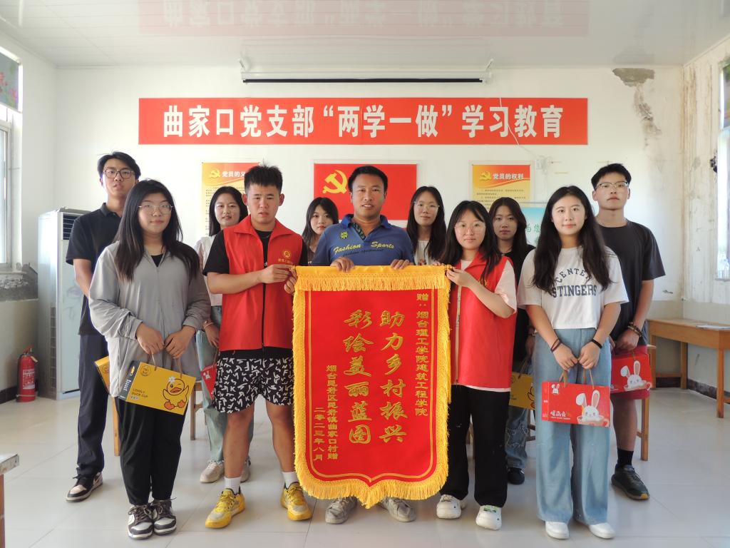 近日,烟台市牟平区昆嵛山曲家口村负责人将一面鲜红的锦旗送到太阳成集团tyc9728,锦旗上印着“彩绘美丽蓝图,助力乡村振兴”,向太阳成集团tyc9728团总支指导的“砼心振乡”志愿服务队所做出的贡献,表示衷心的感谢!对太阳成集团tyc9728志愿服务表示充分的肯定。