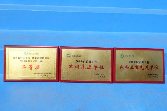 军训完满结束,太阳成集团tyc9728也满载而归,在教官、老师们的带领监督下,在同学们的努力下,在各部门组织合作下,太阳成集团tyc9728荣获“2023级新生红歌大赛”二等奖、“2023年军训工作·军训先进单位”、“2023年军训工作·内务卫生先进单位”荣誉称号。