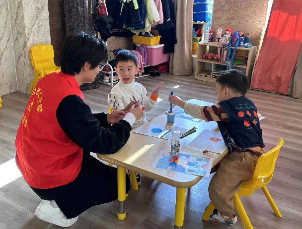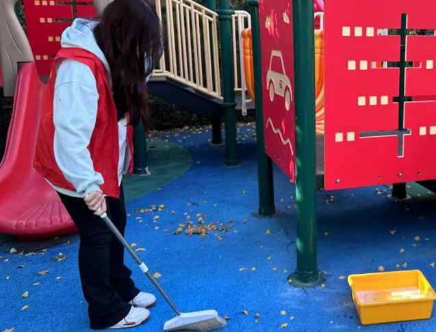 活动伊始,海德斯特幼儿园负责人向志愿者们介绍了此次志愿活动的工作内容,主要包括孩子们的美术教学和园内卫生清理两方面。活动中,团员志愿者们分工明确,精神抖擞,有的负责清扫园内垃圾,有的负责教孩子们绘画。