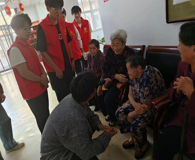 此次活动中,志愿者们身穿红色志愿服且怀着一颗赤诚的心服务于每个角落。大家为看望老人提前买好了水果和糕点,周到的扶着老人入座,耐心地与老人进行交流,大家逐渐参与到此次对话中,融入到这温馨的氛围里。期间,志愿者为老人们打扫了休养室,休闲室等,细心地擦拭目所能及的每个角落。