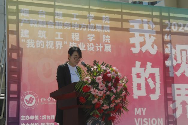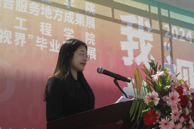 最后,由毕业生代表李泽宇上台发言。她表示本次展览的主题“我的视界”,蕴含着每一位参展同学对“视界”的独特理解和感悟。每一件作品都凝聚了同学们的深入研究和创意诠释,“艰辛努力终有成”感谢导师的辛勤指导,毕业设计为自己搭建了顺利步入社会新世界的桥梁。