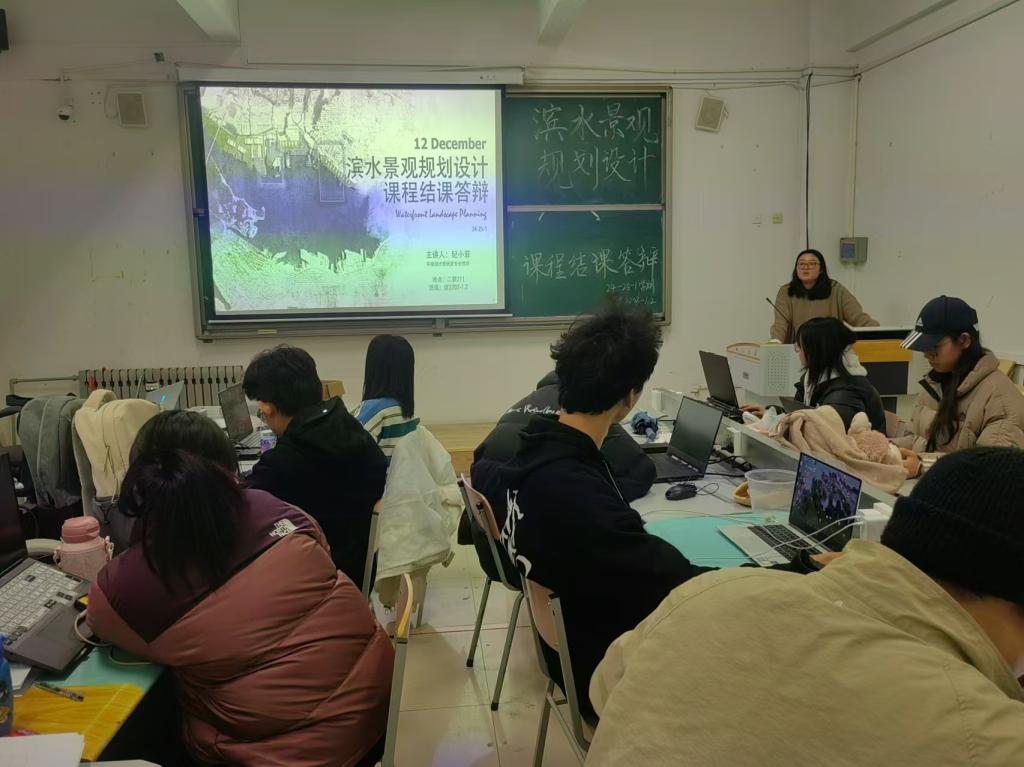 为促进良好的课程改革,推动应用型课程建设,2024年12月12日,太阳成集团tyc9728环境设计教研室举办了一场《滨水景观规划设计》课程观摩课,本次观摩课由环境设计专业教师纪小菲老师主持,面向环境设计专业2022级员工进行景观实践答辩。环境设计教研室主任邢国涛老师、专业教师刘靖坤老师、张菁艺老师、姜明汝老师参加了此次观摩课。