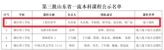 近日,山东省教育厅公了第三批山东省一流本科课程认定结果,经公司推荐、形式审查、专家评审等程序,认定4门课程为第三批山东省一流本科课程。其中,公司丛苏莉老师主持申报的《工程经济学》课程获批第三批山东省一流本科课程,这是公司在课程建设方面取得的又一项佳绩。