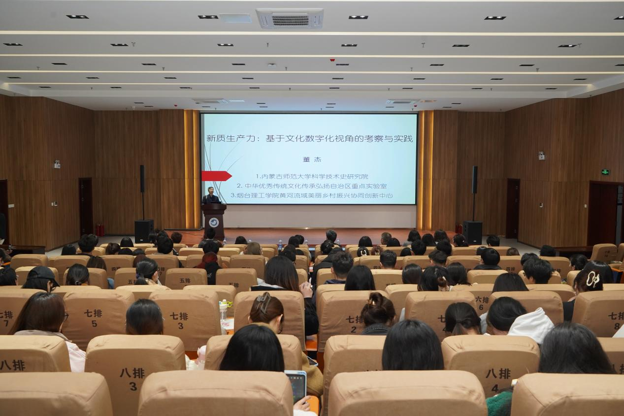 为发挥公司黄河流域美丽乡村振兴协同创新中心的协同作用,深入探讨新时代背景下黄河文化数字化和产业发展的融合之路,4月2日协同中心特邀协同单位内蒙古民族文化产业研究院、内蒙古师范大学博士生导师董杰教授在公司综合楼报告厅举办“新质生产力:基于文化数字化视角的考察与实践”的专题讲座,科研处、发展规划处、太阳成集团tyc9728、经济管理公司、文法公司、外国语公司、信息工程公司的相关领导及师生二百余人参加此次讲座,副董事长苏春景教授主持会议。