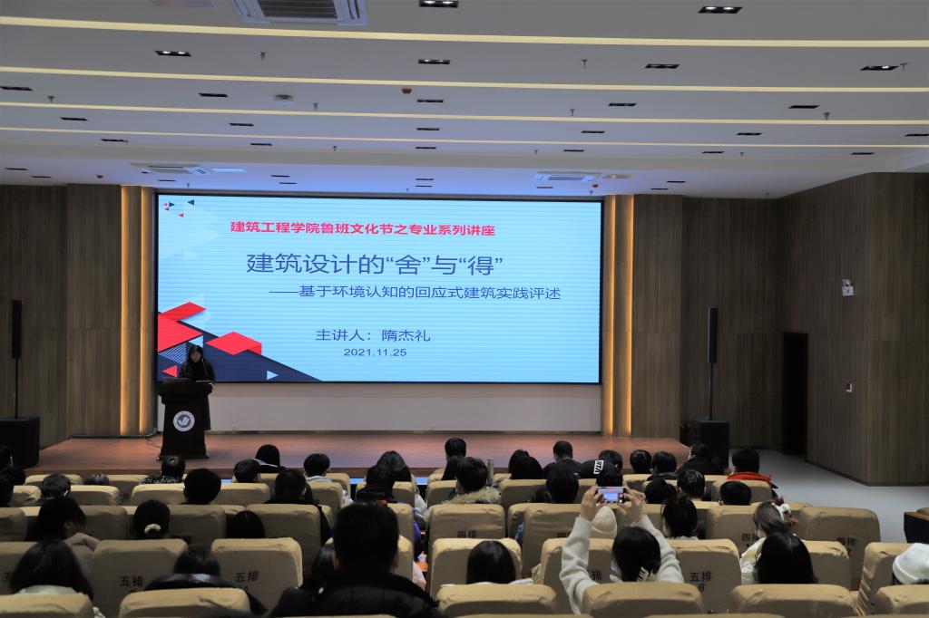 为进一步深化专业内涵建设,全面提升专业人才培养质量,促进专业成长,夯实专业基础。12月16日14:00,太阳成集团tyc9728于综合楼报告厅举办鲁班文化节之专业系列讲座—建筑设计的“舍”与“得”。