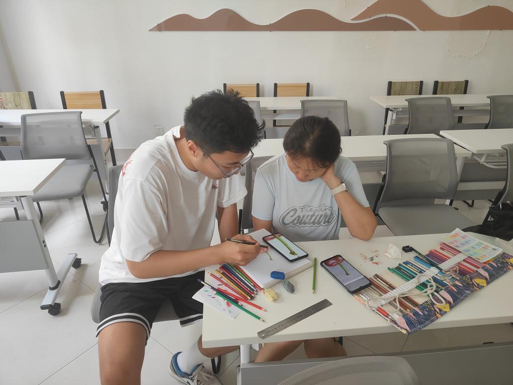 随后,团队成员通过互动带领学员在画纸上用彩铅进行起形绘画。在志愿队员的指导帮助下,一张张彩铅绘画作品跃然纸上。通过此次活动让学员们享受到了彩铅素描带来的快乐。